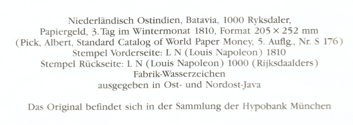 Netherlands Indies 1000 Rijksdaalders 1810 Probolingo - Reproduction Hypobank Munchen - SOLD - SOLD - SOLD - SOLD