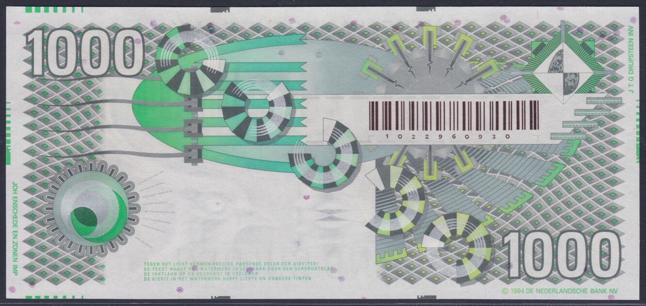 Netherlands 1000 gulden 1994, Lapwing, in pristine UNC grade SOLD - SOLD - SOLD