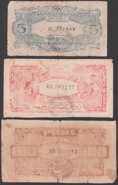 Indonesia PRRI 5/25/100 Rupiah set of 3 notes
